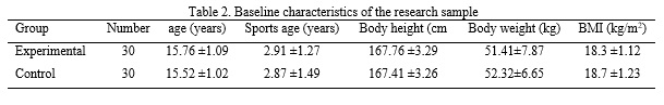No significant baseline differences were observed between the AI-guided (experimental) and traditional (control) groups in age, sports experience, anthropometric characteristics, or BMI (Table 2).