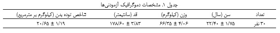 اطلاعات دموگرافیک شرکت کنندگان در جدول 1 خلاصه شده است. نتایج آزمون شاپیروویلک نشان داد توزیع نمرات نرمال بود (p>0.05). برای بررسی اثربخشی کینزیوتیپ بر آزمون الگوهای حرکتی در فوتبالیست های مبتلا به بی ثباتی مزمن مچ پا از آنالیز واریانس با اندازه‌گیری مکرر استفاده شد. به‌منظور استفاده از این روش آماری، پیش فرض  این تحلیل مورد بررسی قرار گرفت. برای بررسی پیش فرض نرمال بودن توزیع داده ها از آزمون شاپیروویلک استفاده شد. نتایج نشان داد توزیع نمرات در مرحله پیش آزمون و پس آزمون نرمال بود (p>0.05). نتایج تحلیل واریانس در جدول 2 آورده شده است. میانگین و اختلاف استاندارد نمرات پیش-آزمون – پس آزمون هر یک از آیتم های آزمون الگوهای حرکتی در جدول 2 گزارش شده است. تأثیر کینزیوتیپ در آزمون دیپ اسکات (P < 0.001, ES = 0.582)، گام برداشتن از روی مانع (P < 0.001, ES = 0.800) و لانچ در یک خط مستقیم (P < 0.001, ES = 0.810) معنادار می باشد. هم چنین، طبق نتایج جدول 2 با توجه به اندازه اثر (ضریب اتا) محاسبه شده، 2/58 درصد از تفاوت مشاهده شده در میانگین پس آزمون نمره دیپ اسکات، ناشی از اثر کینزیوتیپ است. همچنین 80 درصد از تغییرات مشاهده شده در میانگین پس آزمون نمره گام از روی مانع و 81 درصد از تفاوت مشاهده شده در میانگین پس آزمون نمره لانچ، ناشی از تأثیر کینزیوتیپ بوده است.